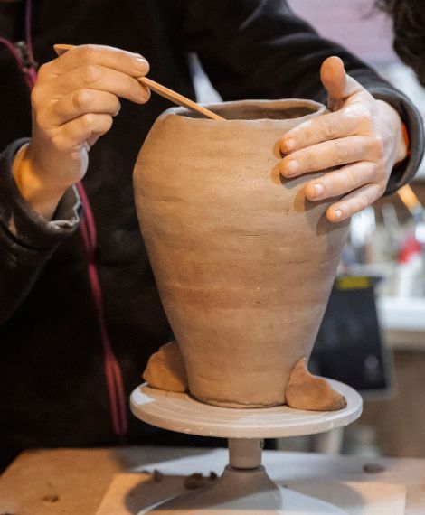 Clases semanales de dos horas, en grupos reducidos, para todos los niveles. Dedícate este espacio, desarrolla tu potencial creativo y aprende a modelar con arcilla: desde un objeto utilitario hasta tu próxima obra de arte.