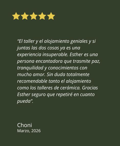 No importa si es tu primera vez: la cerámica te invita a ir despacio, a sentir, a equivocarte y a volver a intentarlo. Hay algo terapéutico en ese gesto antiguo, en crear algo con tus propias manos mientras el aire del campo entra por la ventana. No venimos a hacer piezas perfectas. Venimos a recordar lo que se siente al crear.